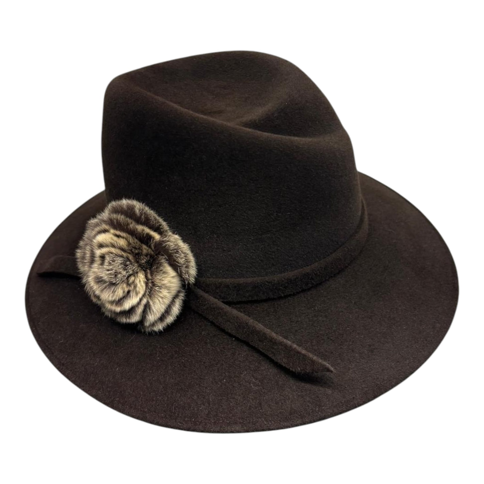 Bruin kleur wol velour hoed,(heel zacht materiaal) van een Nederlandse fabricaat.